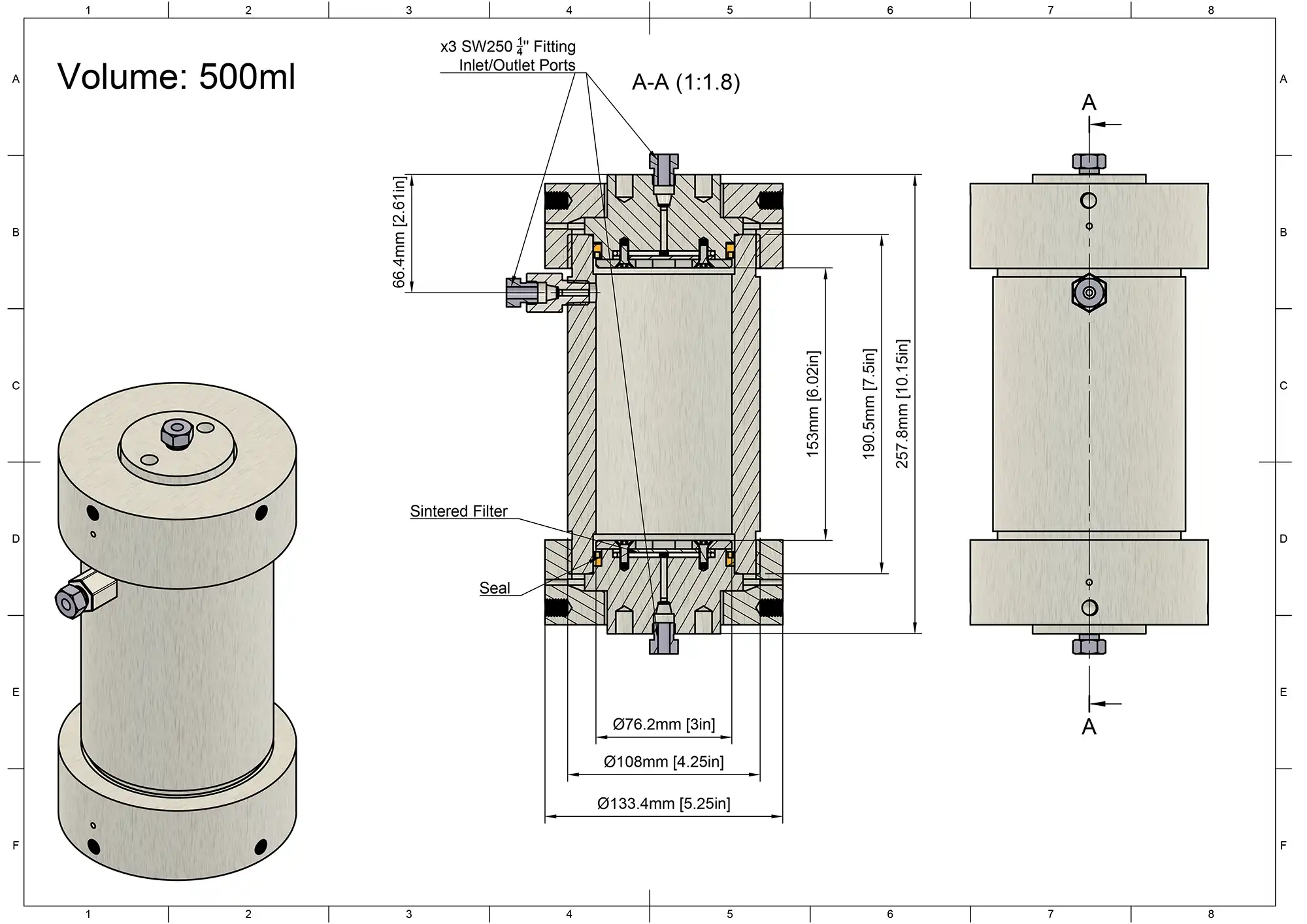 | Dimensions | 10.15” (H overall) 6.4” (H internal) 4.25” (OD) x 3” (ID) |